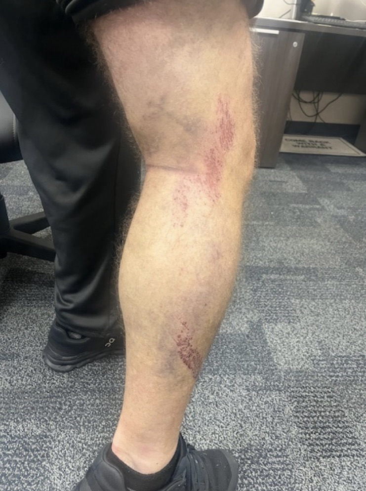 Responding officers quickly located Arrindell on East Bay Boulevard. He fled on foot but sustained a severe leg injury after attempting to climb a barbed-wire fence. Arrindell was provided medical treatment before being booked into jail.