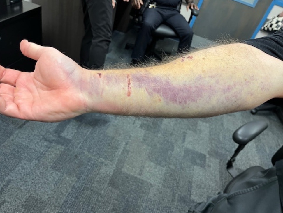 Arrindell was initially stopped for driving 30 miles per hour over the posted speed limit. During the traffic stop, officers determined he was operating a vehicle with a suspended license. When the officer attempted to make the arrest, Arrindell resisted and engaged in a physical altercation. The officer deployed K9 Bolo, but Arrindell re-entered his vehicle and attempted to flee. In the process, both the officer and K9 became entangled, and the officer was struck by the fleeing vehicle.