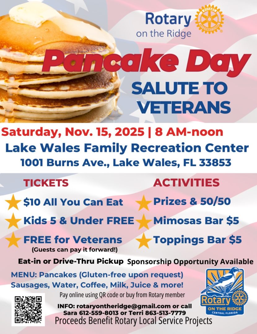 Rotary on the Ridge has been presenting Pancake Day-Salute to Veterans for three years now after the Lake Wales Kiwanis Club passed the pancake flipper to them in 2022.